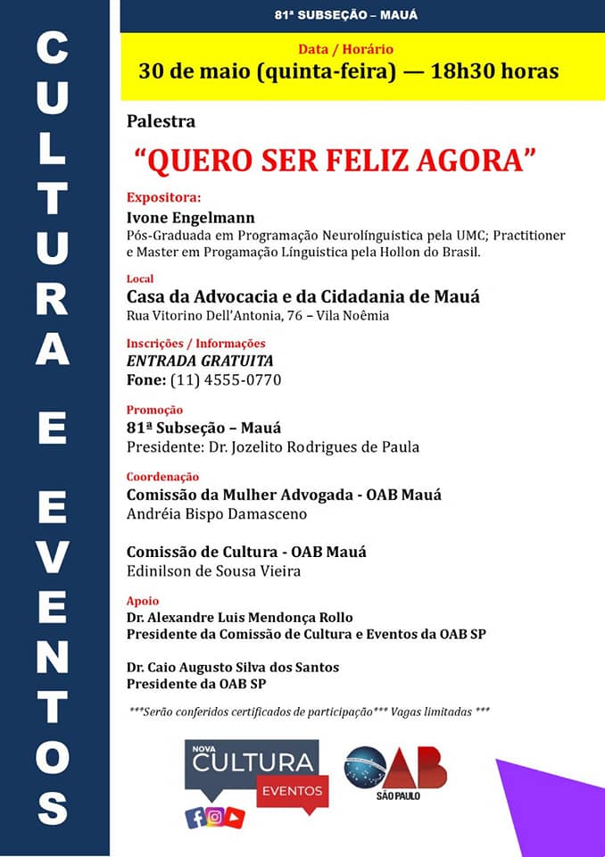 Palestra Quero ser feliz agora